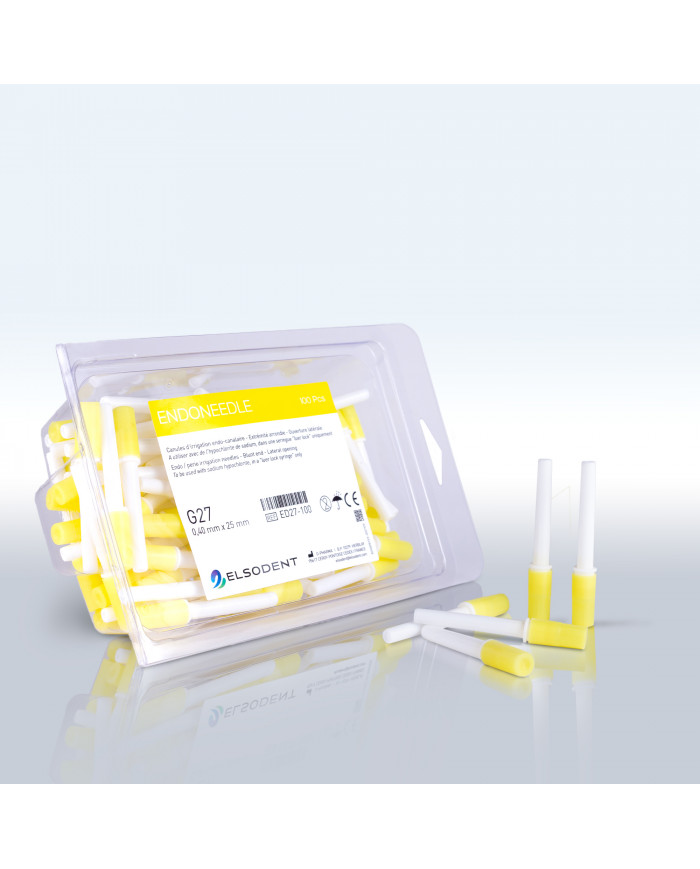 Canules d’irrigation endocanalaires, à bout mousse et ouverture latérale pour rinçage des canaux radiculaires sans risque de perforation de l’apex.