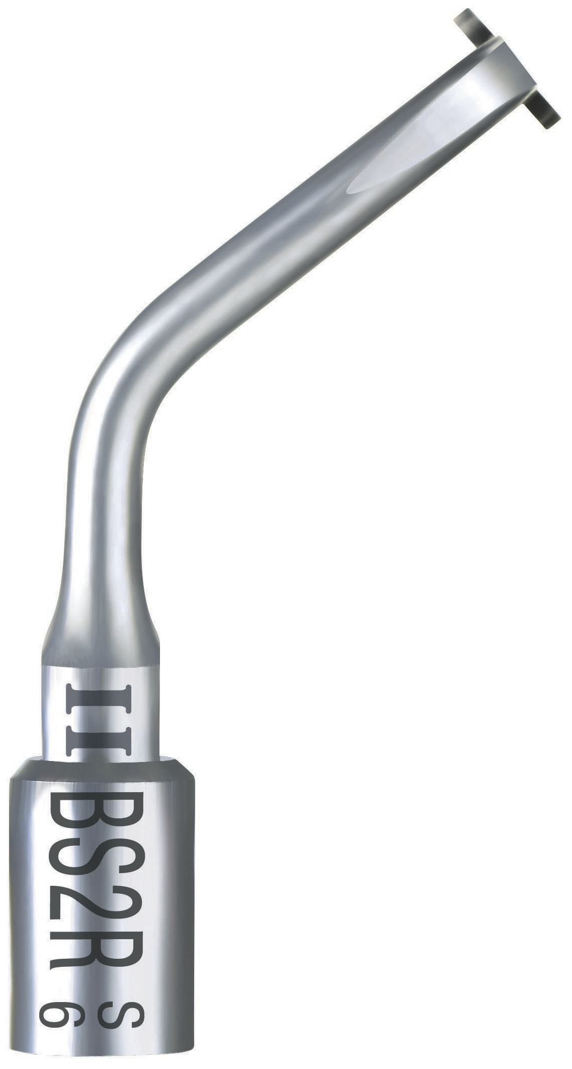 BS2R :Scie à os latérale à quatre dents, pour la découpe d’os cortical ramique. Orienté à gauche ou à droite, cet insert effectue des traits d’ostéotomie verticaux et horizontaux sur la mandibule droite ou gauche du patient.