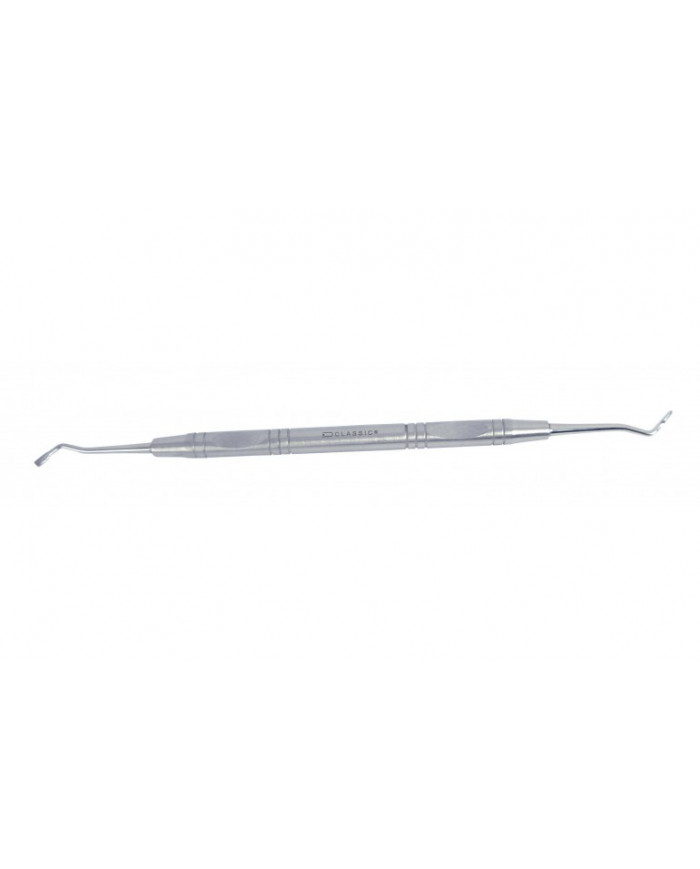 La surface plane du fouloir permet de fouler l'amalgame de façon efficace dans la cavité dentaire. Chaque instrument comprend deux embouts de diamètres différents à adapter selon la classe et le diamètre de la cavité à obturer