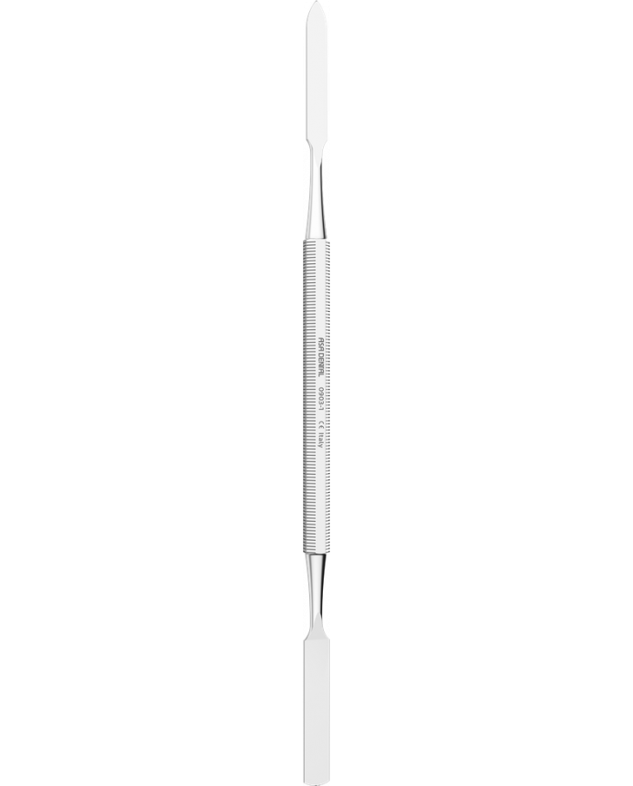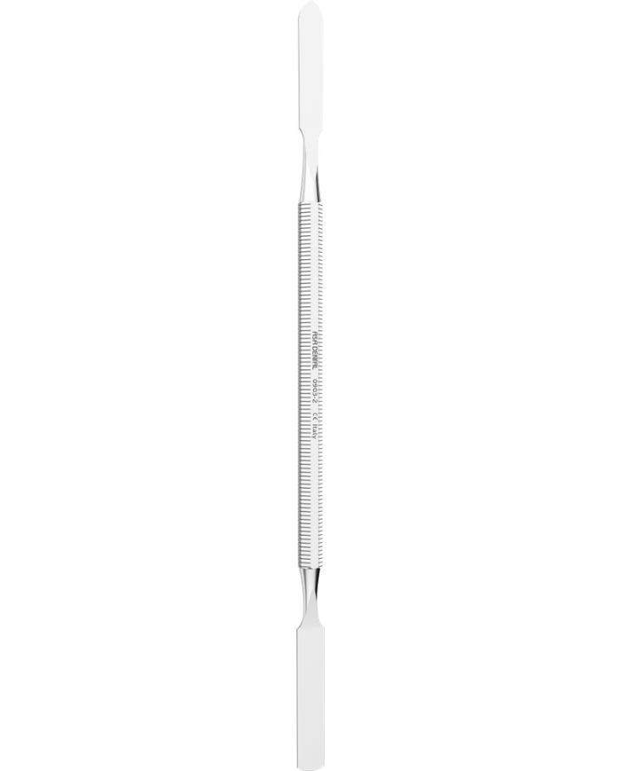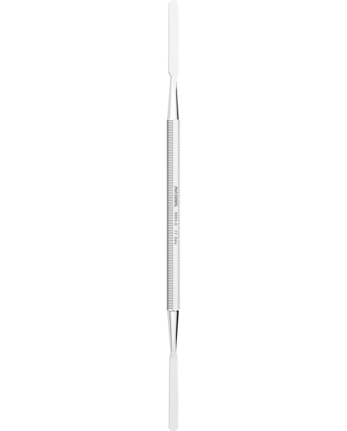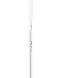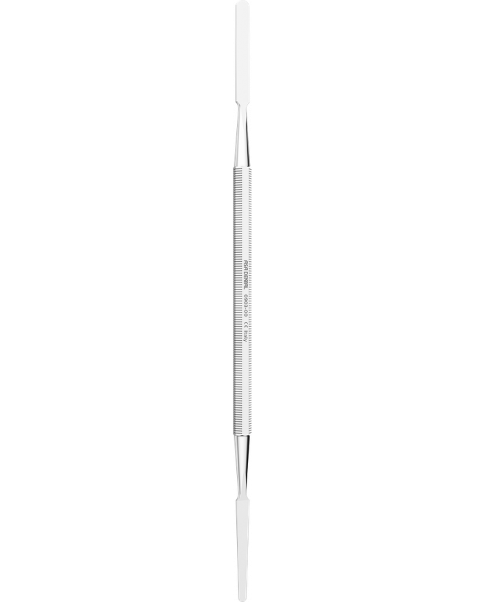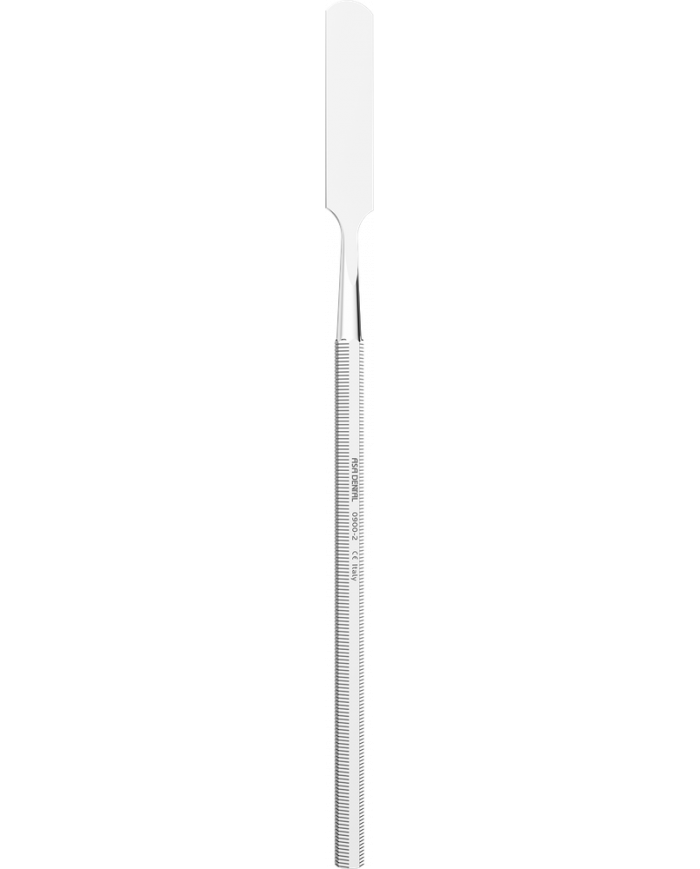 Spatule permettant le mélange des ciments ou autres préparations sur une plaque de verre, le dépôt du matériau dans la cavité ou du ciment dans la couronne provisoire. Manche rigide et souple pour un malaxage facilité et l'obtention d'un mélange homogène.