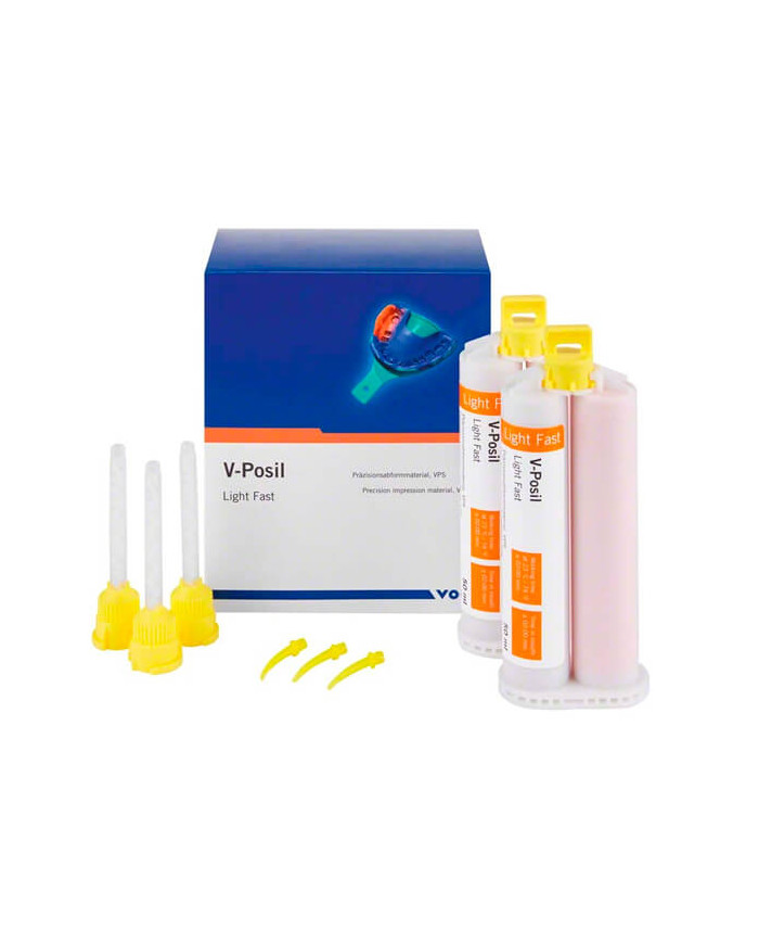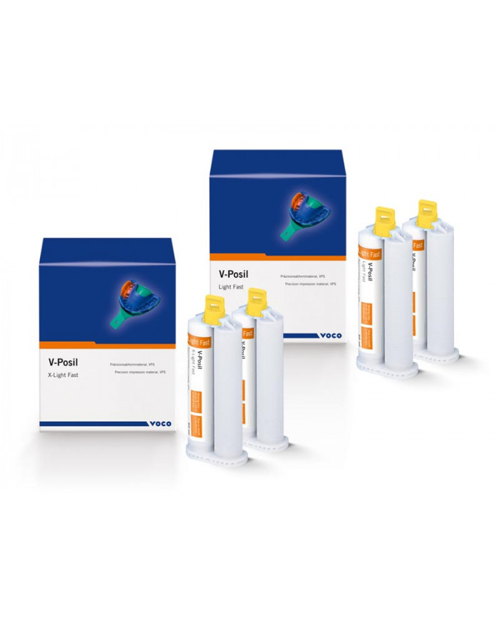 Les produits V-Posil sont disponibles en viscosités : putty, heavy-bodied, medium-bodied, light-bodied, x-light-bodied, et en différents conditionnements : cartouches Automix Standard 1:1 de 50 ml et cartouche 5:1 de 380 ml pour une utilisation avec la plupart des doseurs ou mélangeurs automatiques disponibles en commerce (p.e. VOCO Dynamic Dispenser, Sympress) et des boîtes Putty 1:1 traditionnelles.