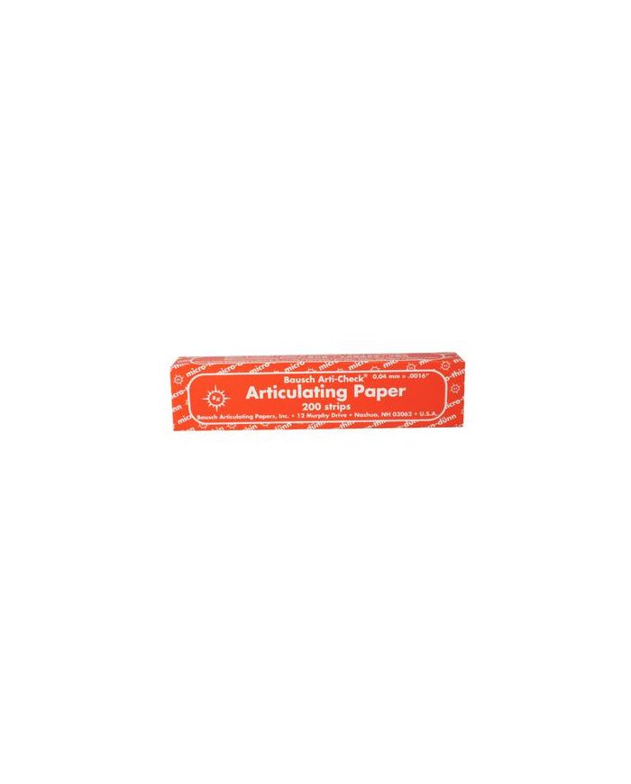 Papiers d'occlusion Arti-Check Ultraminces 40 μm Reference 90.1019 Dimension : 103mmX20mm Conditionnement : Boite de 200 Bandes Prédécoupées Couleur 2 : Rouge 14,90 €