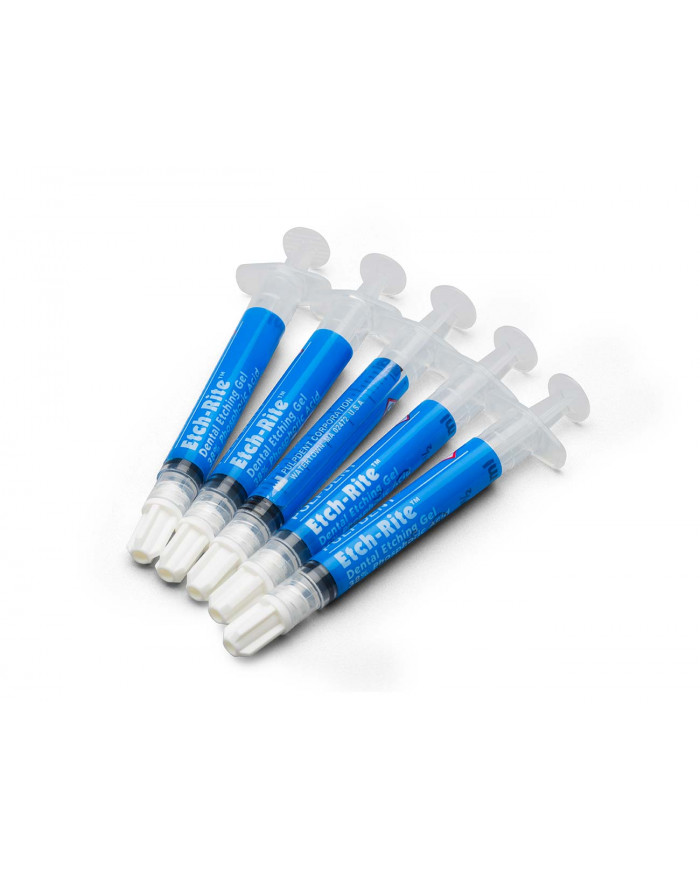 La norme mondiale depuis plus de deux décennies, Etch-Rite est un gel de mordançage de qualité supérieure formulé pour les caractéristiques de travail et de manipulation maximales. À utiliser pour des milliers d’applications, Etch-Rite se dispense à travers des aiguilles de petite gauge pour une application précise, reste en place sans couler et se rince facilement sans laisser de résidu. Sa couleur bleue permet une meilleure visibilité. Etch-Rite agit en 15 secondes et son maintien mécanique offre un collage optimal. Aussi disponible en format économique.