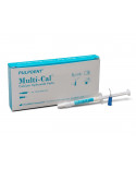 Multi-Cal est une préparation crémeuse à l’hydroxyde de calcium recommandée pour toute application clinique où un traitement à l’hydroxyde de calcium est indiqué. Pour le coiffage pulpaire direct et indirect, sa formule contient 40% d’hydroxyde de calcium dans une préparation crémeuse et aqueuse d’éthycellulose. Multi-Cal est pré-mélangé, sèche à l’air sans durcir et s’enlève facilement des canaux grâce à une lime et de l’irrigation. Radio-opaque, bactéricide, pH > 12.